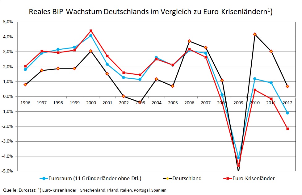 Abbildung 3 – Reales Wachstum und Inflationsraten Deutschland und Eurokrisenländer im Vergleich