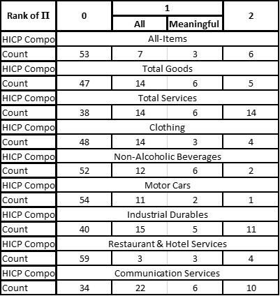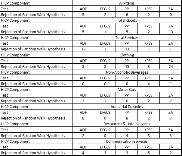Table 4 – Summary of Johansen Cointegration Tests of the HICP Levels