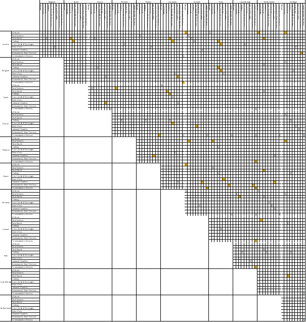 Appendix tables 40 – 48 display the results for Johansen Cointegration tests for the 66 possible combinations of every one of the nine HICP components as well as a couple of additional estimation statistics. Table 4 provides a summary for the estimated rank of at a significance level of 5%. As to be expected, the hypothesis of a self-stabilizing relationship between the pairs of prices is less often rejected as for the stricter unit root tests reported in table 2. However, the results indicate again, that there is not systematic difference between HICP components of tradeable goods and non-tradeable services. Now out of 594 possible cointegration relationships 112 relationships do the reject the H0 of the existence of one cointegration vector at a significance level of 5%. However only in 40 cases the point estimates of the parameters of equation (8) display the correct signs. The number of cointegration vectors for “total goods” is the same as for “total services”, even though the corresponding country pairs are different. For “communication services” the H0 of the existence of one cointegration vector cannot be rejected in 22 cases. The corresponding number for “motor cars” is 11, for “clothing” 14, for “non-alcoholic beverages” 12 and for “industrial durables” 15.