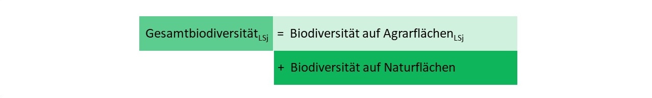 Ausgangspunkt des Bewertungsansatzes ist die Addition des direkten und des indirekten Biodiversitätseffektes eines Landwirtschaftssystems. Der direkte Effekt schlägt sich in der Biodiversität auf den genutzten Agrarflächen nieder, der indirekte Effekt schlägt sich in der Größe der ungenutzten Naturflächen nieder: