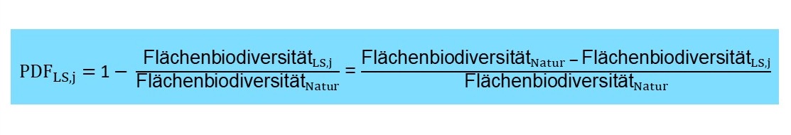Sie gibt an, wieviel Prozent der verschiedenen, in freier Natur vorkommenden Spezies sich im Durchschnitt noch auf der Fläche des Landwirtschaftssystems finden. Subtrahiert man diesen Wert von 1 erhält man folglich den Anteil der Spezies die im Vergleich zur freien Natur verschwunden ist. Dieser Wert wird „Potentially Disappeared Fraction“ (PDF) genannt: